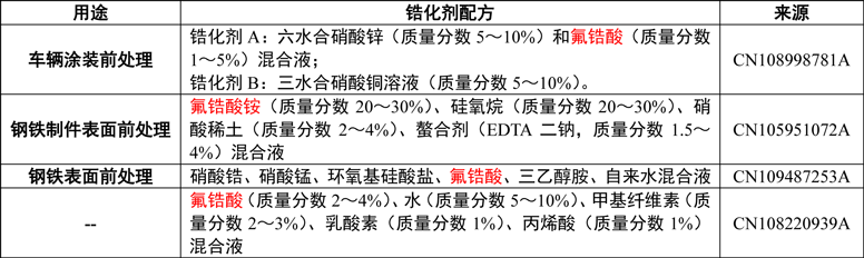 根據(jù)上表所列的資料分析,氟鋯酸(銨)是鋯化劑的常見組分。